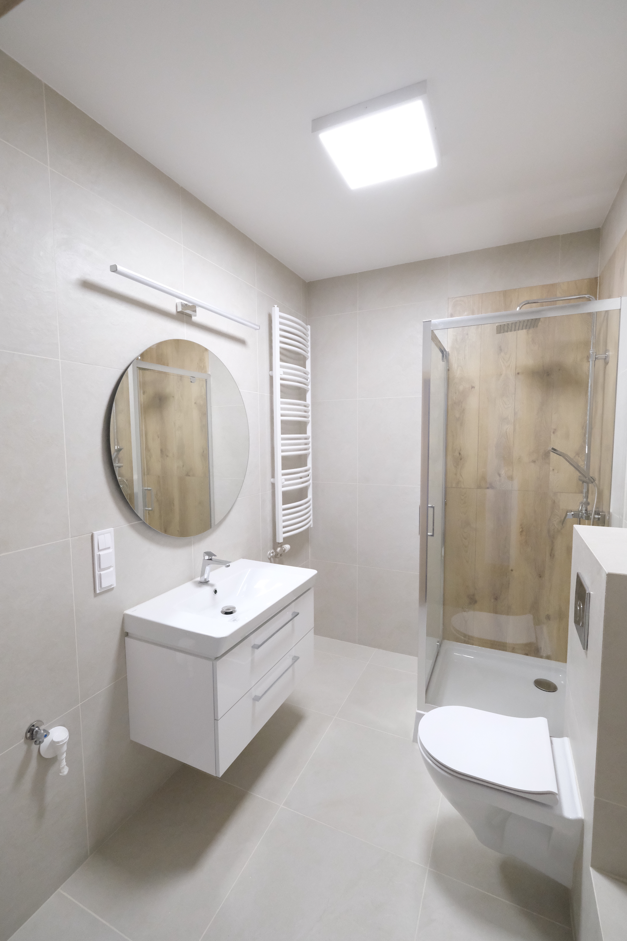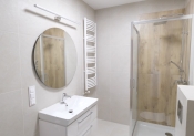 Łazienka jasna, ustawna z kabiną prysznicową,